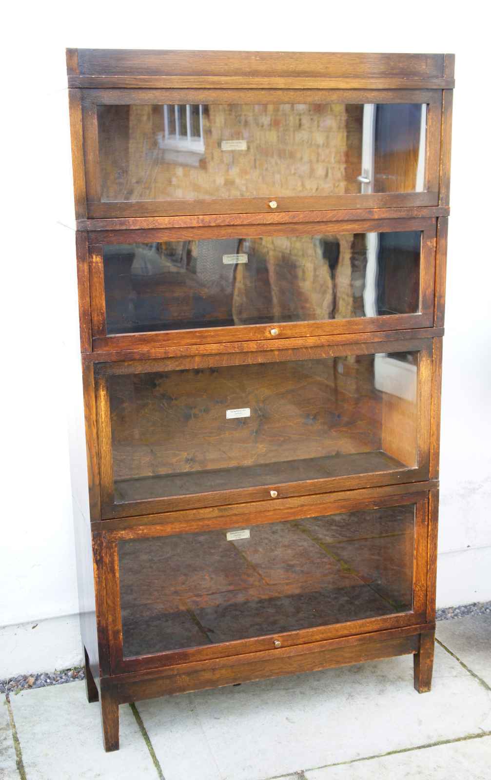 1920s 4 Tier Oak Globe Wernicke Sectional Glazed Bookcase