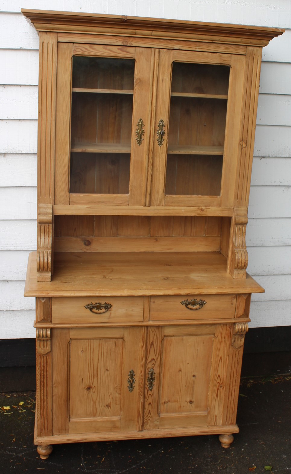 1920s Antique Country Pine Dresser with Glazed Display Top