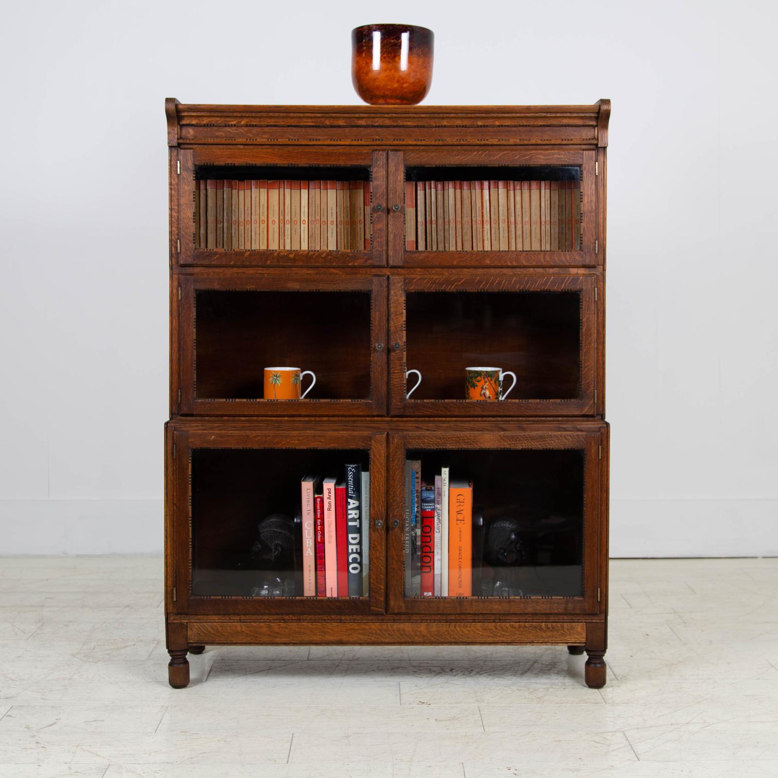 1920s Antique Oak 6 Door Glazed Bookcase Cabinet
