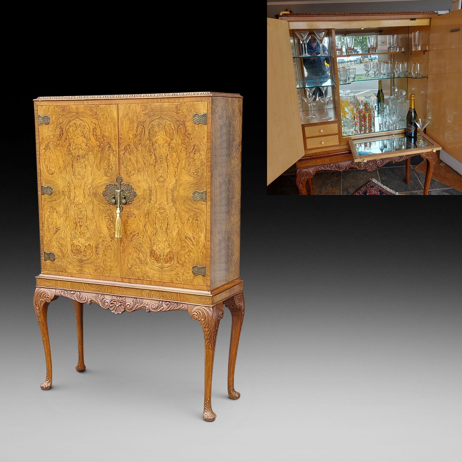 1920s Art Deco Burr Walnut Cocktail Cabinet