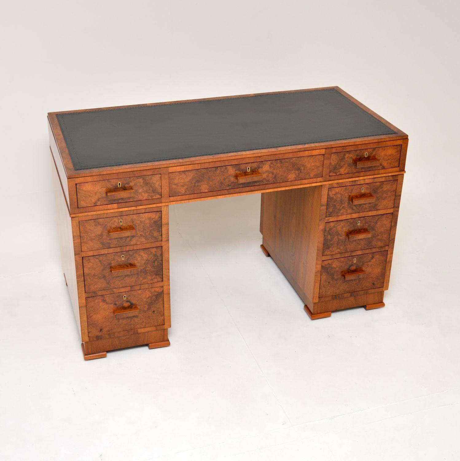 1920s Art Deco Burr Walnut Pedestal Desk (1 of 11)