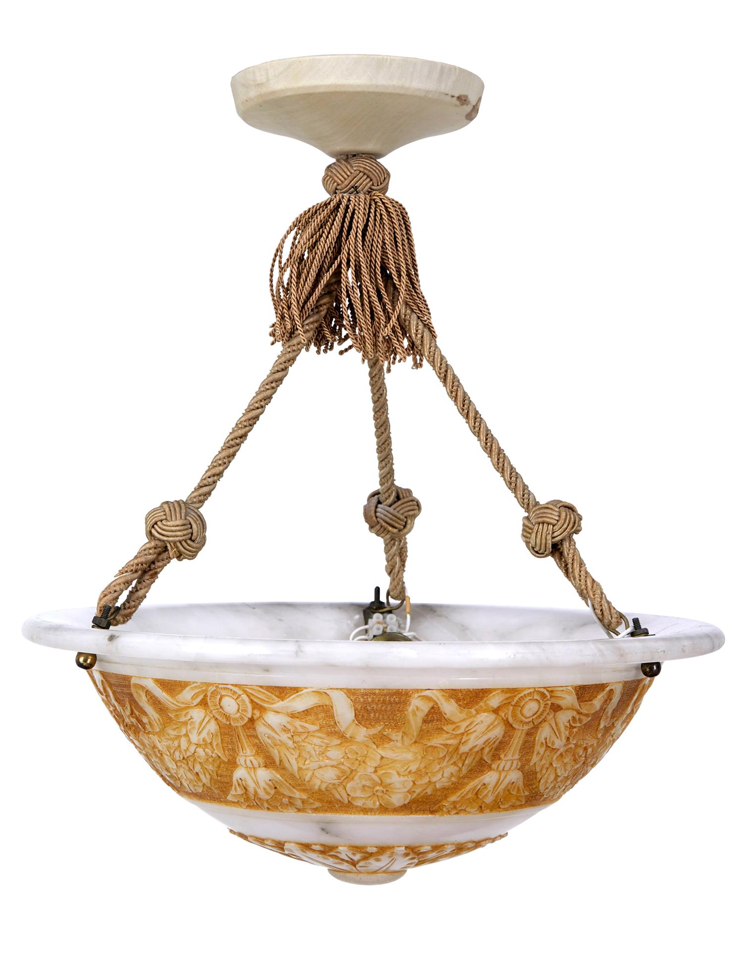 1920s Art Deco Carved Alabaster Ceiling Light (1 of 1)