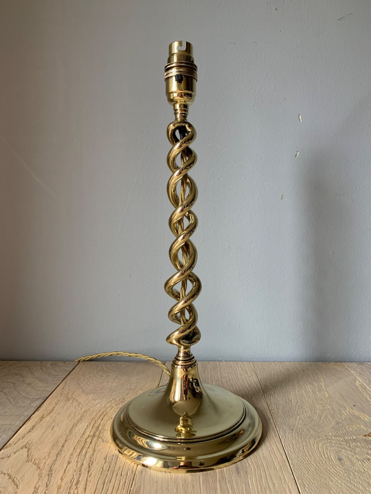 1920s Brass Tall Twist Table Lamp, Rewired & PAT Tested