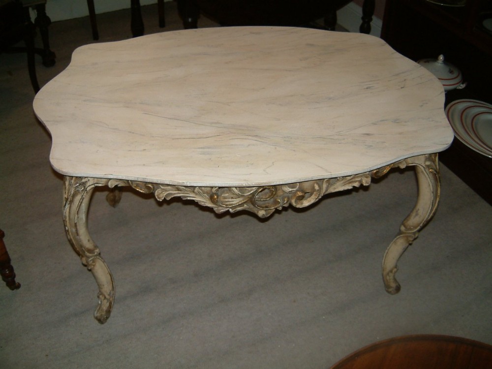 1920s Carved Coffee Table with Faux Painted Marble Top