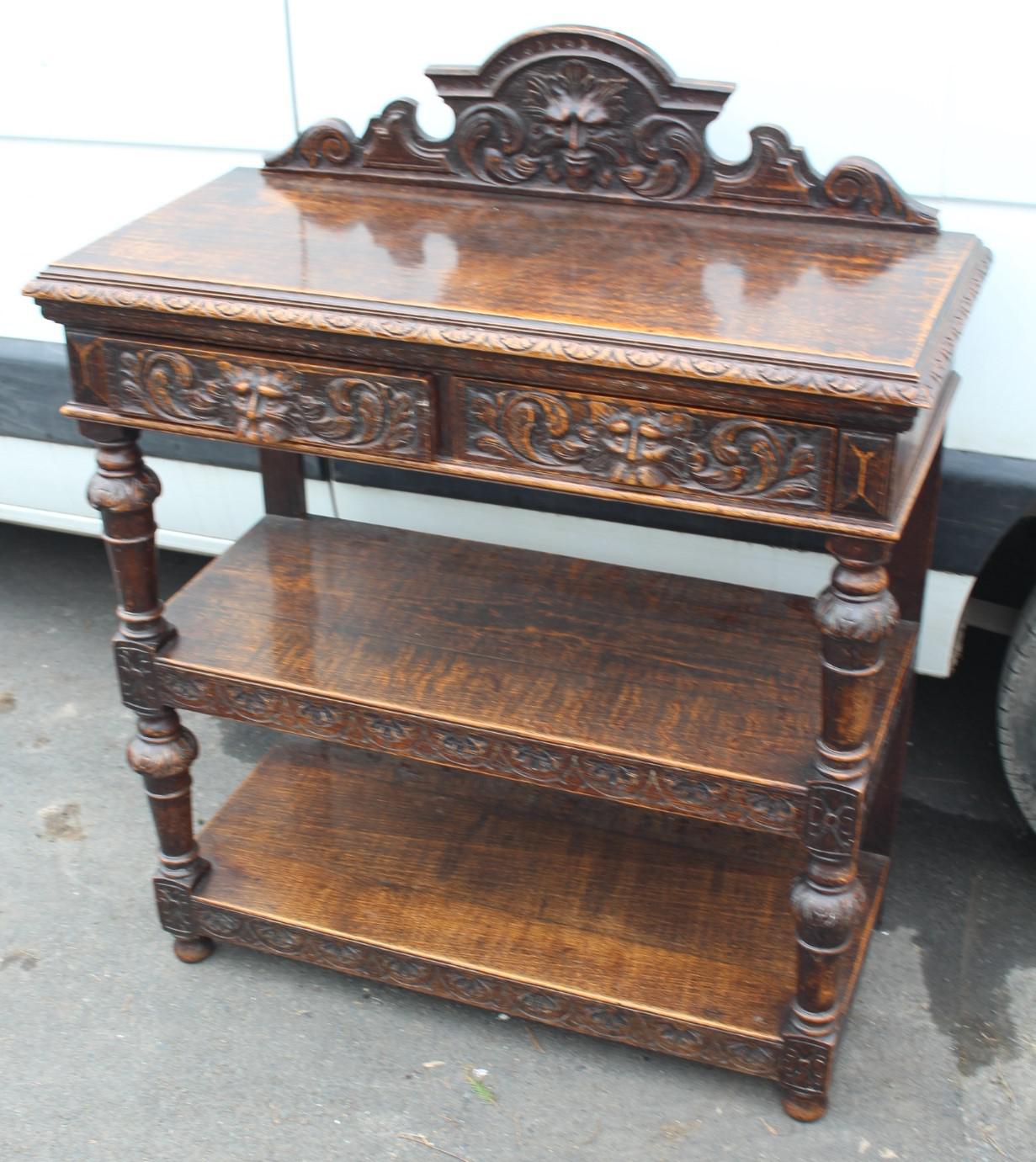 1920's Carved Oak Dumbwaiter with 2 Shelves