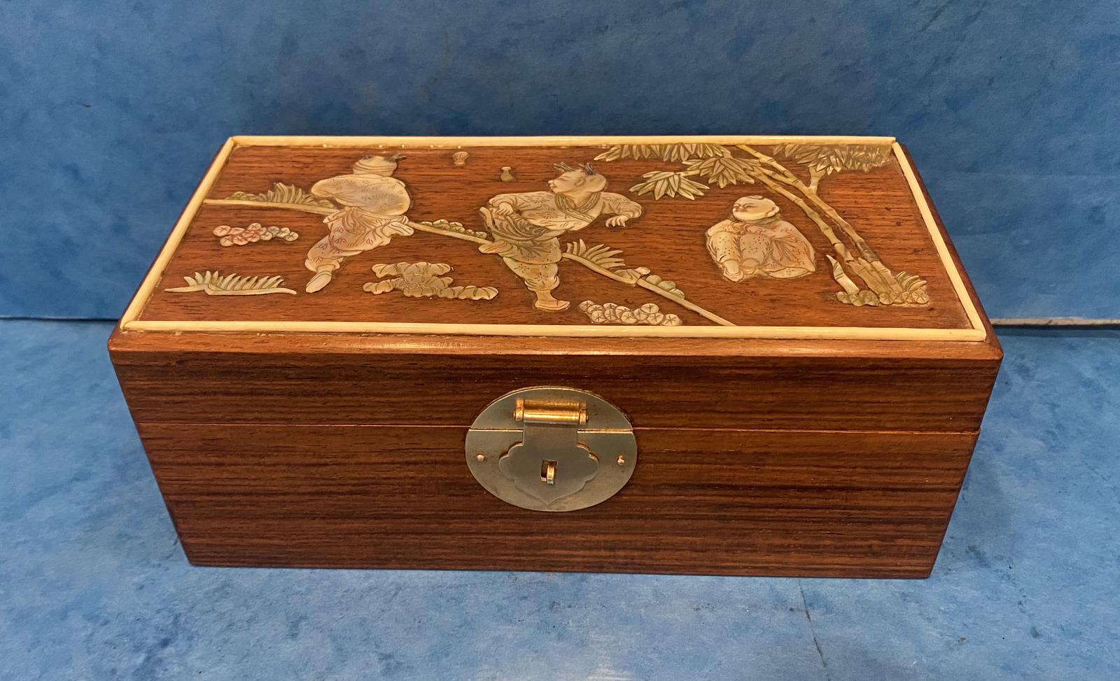 1920s Chinese Rosewood Box with Mother of Pearl Mounts