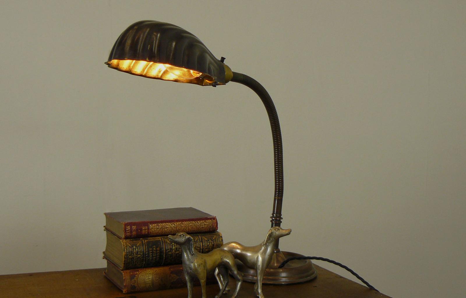 1920's Copper and Brass Gooseneck Desk Lamp