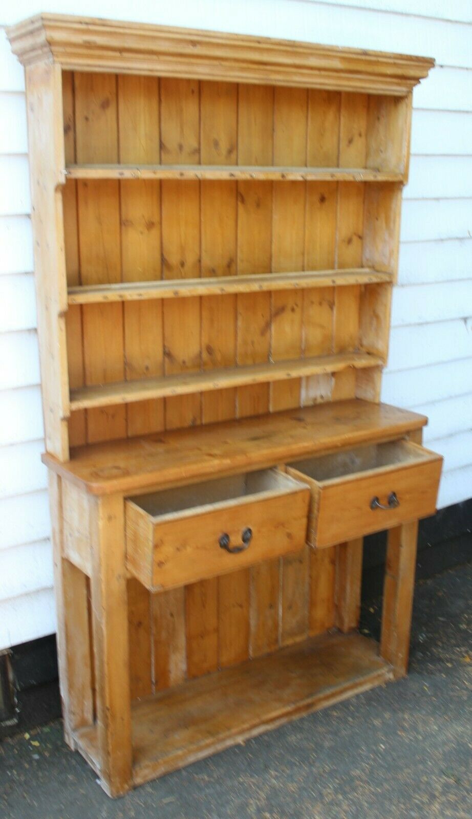 1920s Country Pine Original Dresser with Pot Board & Display Rack