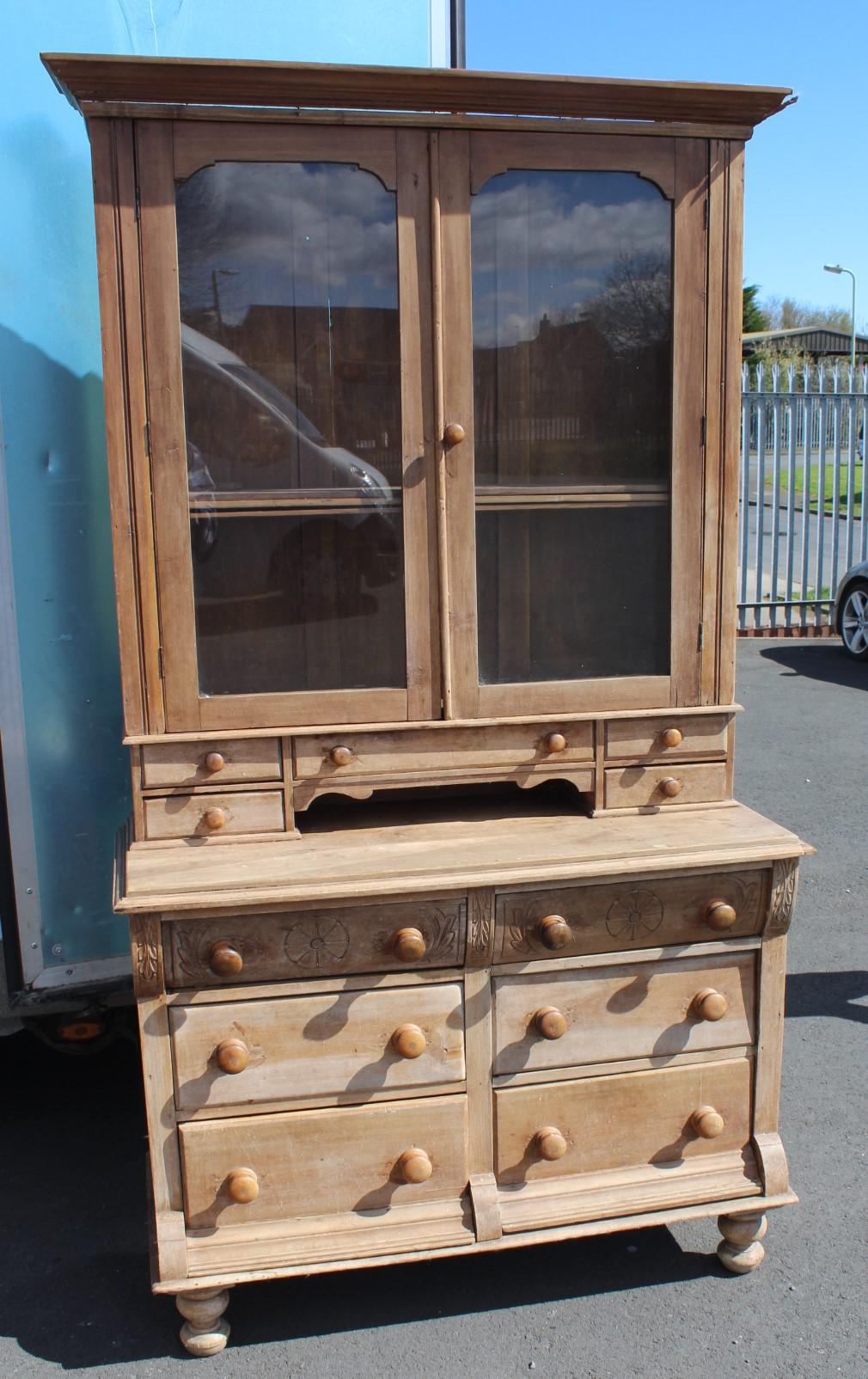 1920's Country Style Beech Dresser with Glazed Display Cupboard