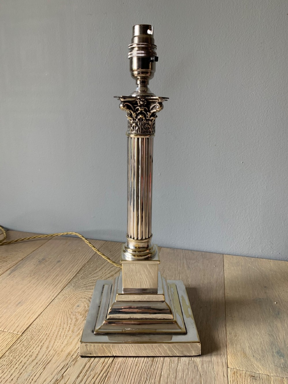 1920s Distressed Chromed Brass Corinthian Column Table Lamp, Rewired & PAT Tested