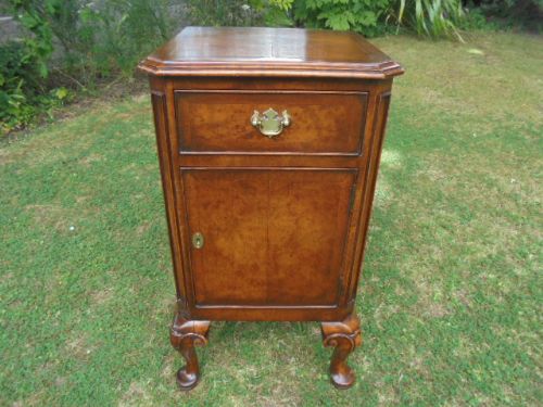1920s Figured Walnut Bedside Cabinet / Bedside Table