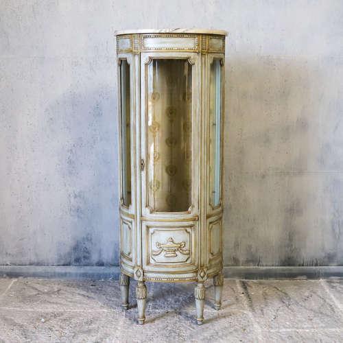 1920s French Petite Demi Lune Vitrine with Marble Top & Glass Shelves (1 of 14)
