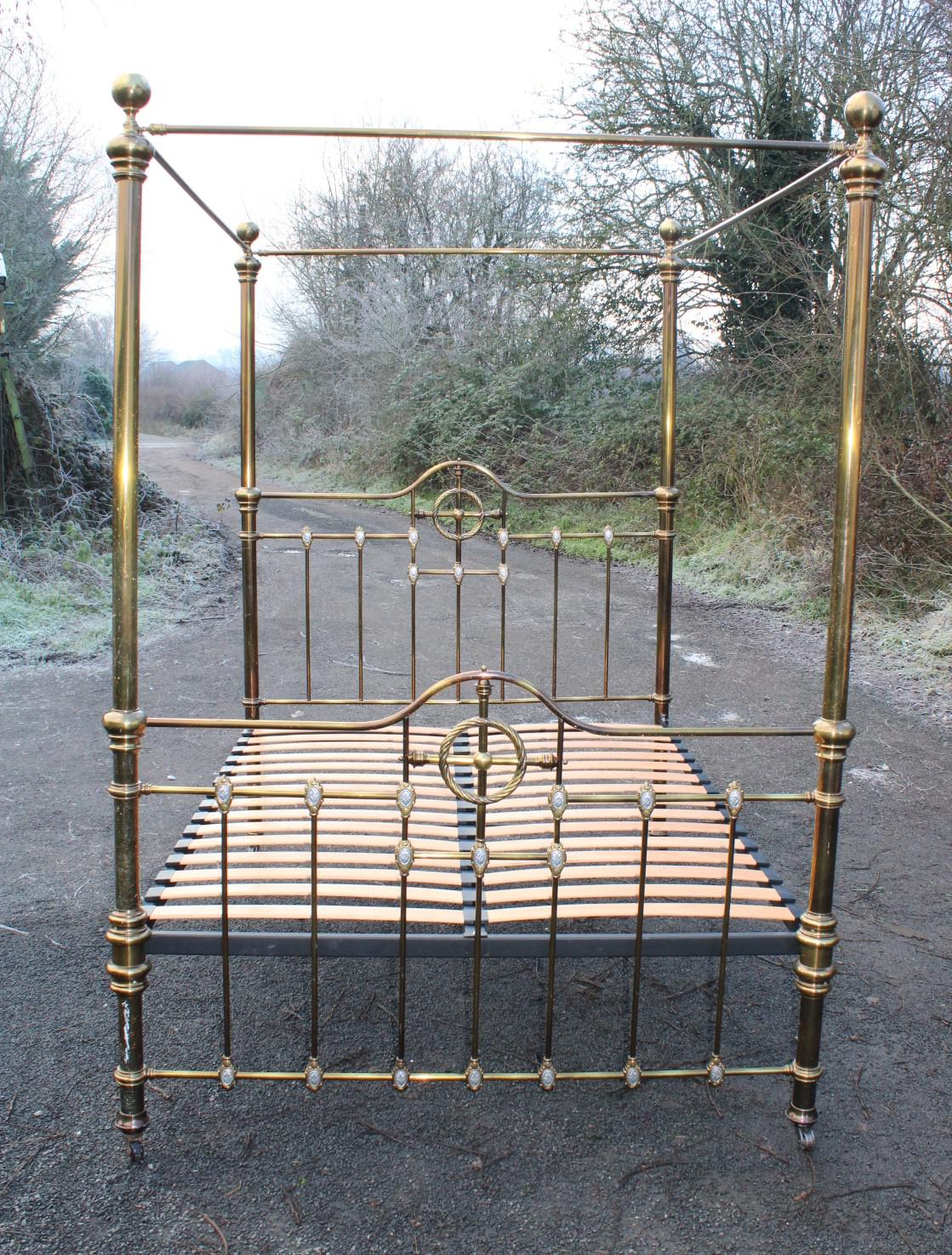 1920s King Size Brass Four Poster Bed Frame with Slatted Base