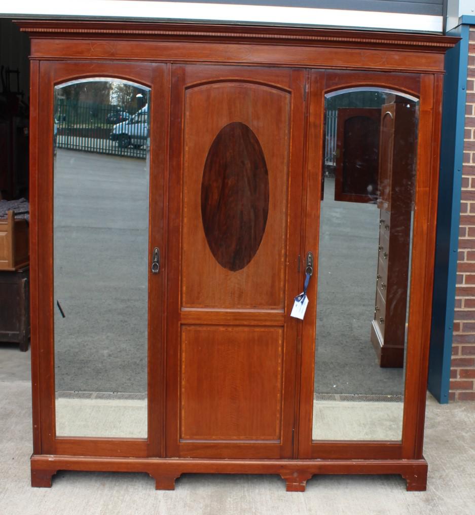 1920s Large 3 Door Mirrored Mahogany Wardrobe