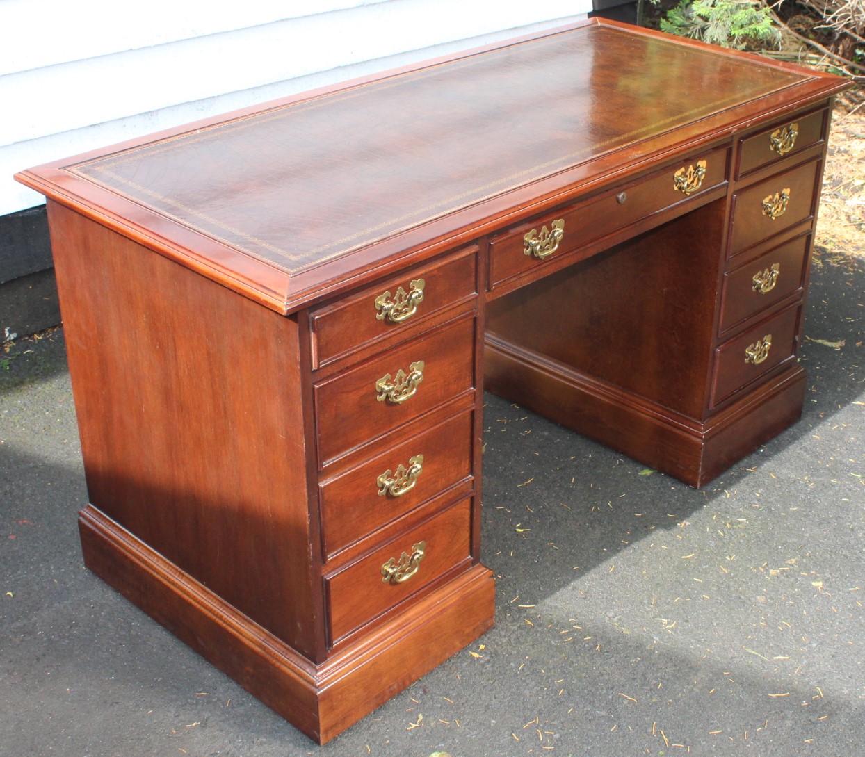 1920s Large Mahogany Pedestal Desk with Brown Leather on Top