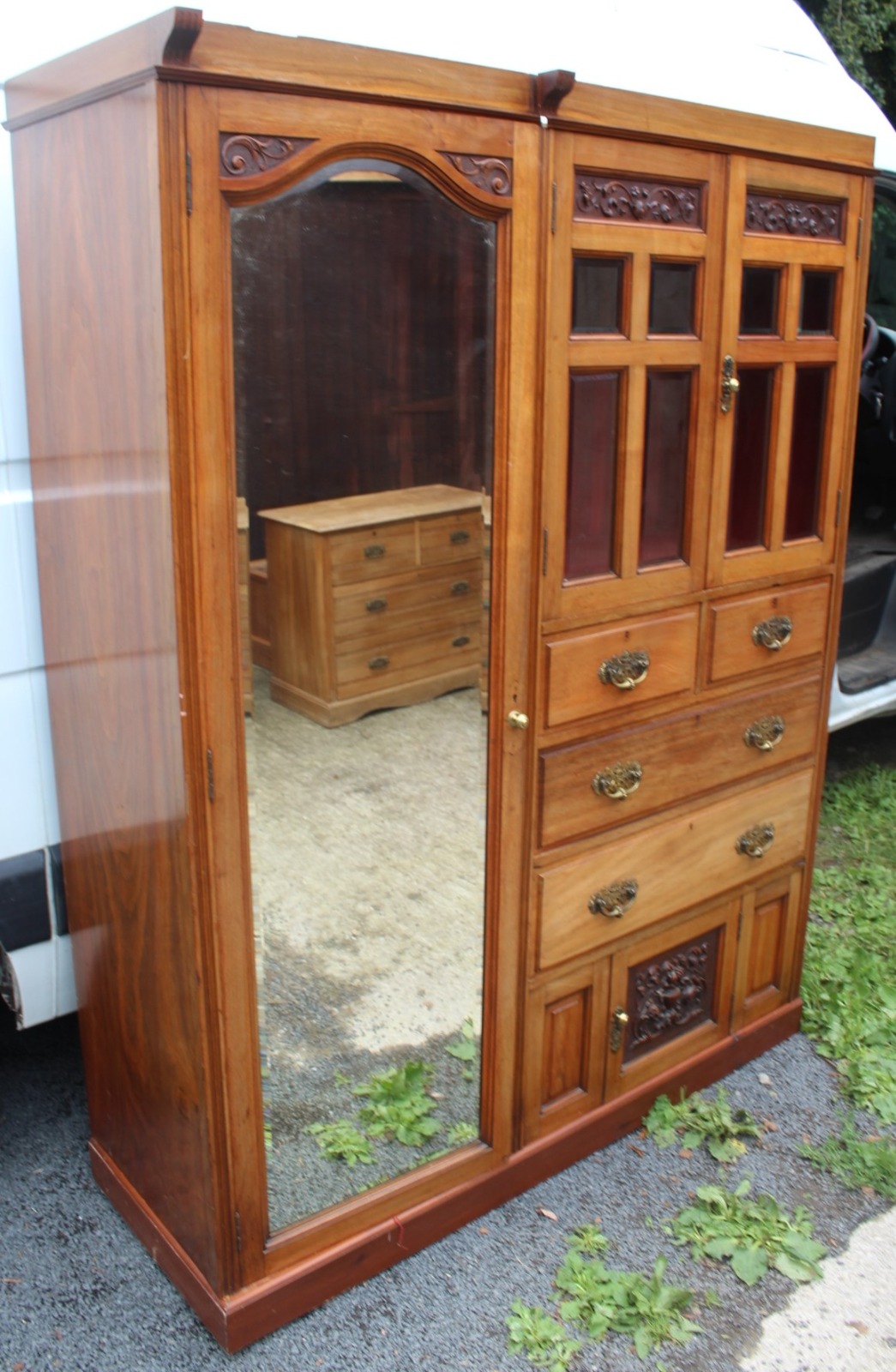 1920s Large Quality Satin Walnut Mirrored Combination Wardrobe