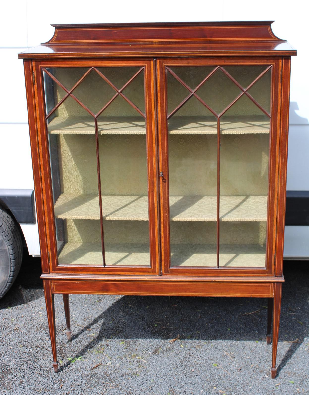 1920s Mahogany 2 Door Glass China Cabinet with Inlay