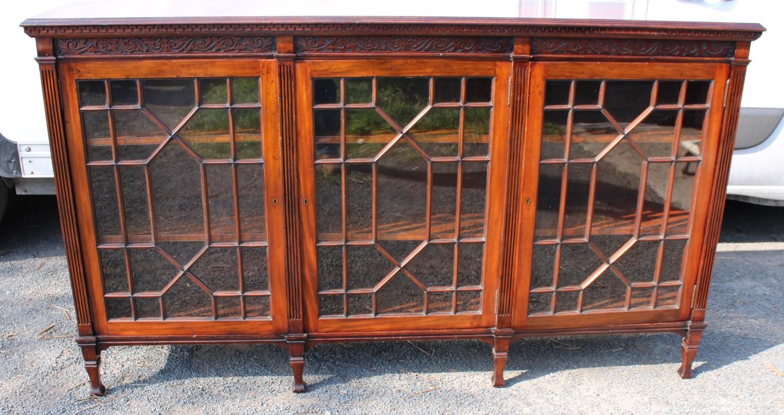 1920s Mahogany 3 Door Low Bookcase with Astragal Glazing + Key