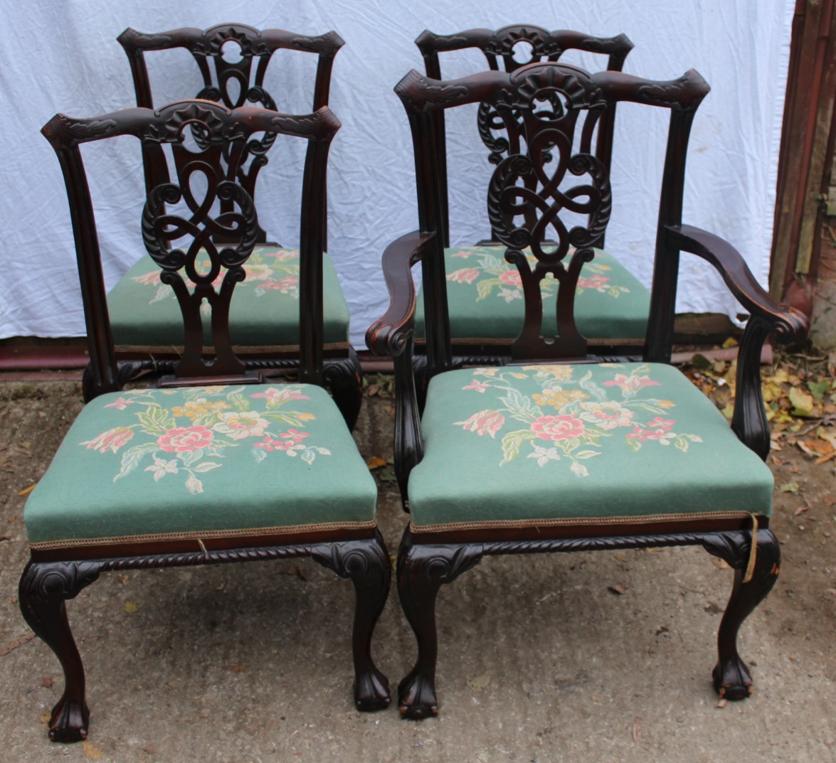 1920s Mahogany Ball & Claw Feet Carver Plus 3 Chairs