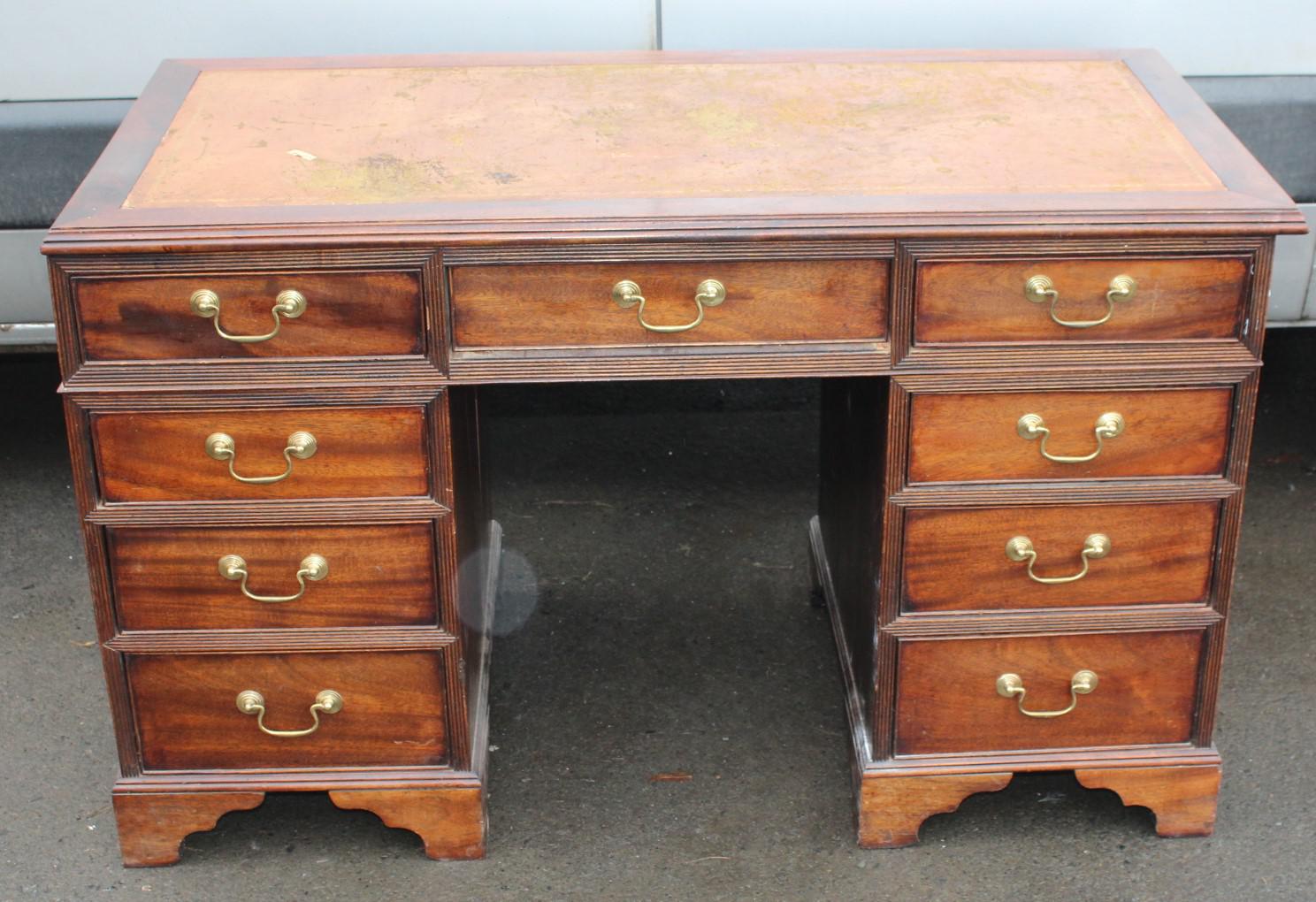 1920s Mahogany Pedestal Desk with Brown Leather on Top