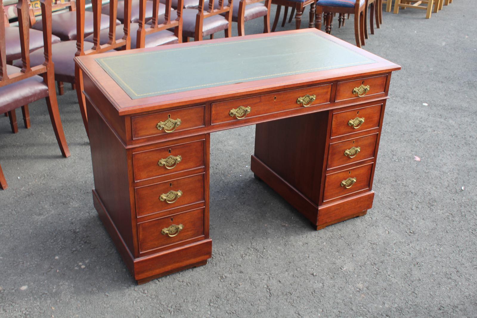 1920s Mahogany Pedestal Desk with Green Leather on Top
