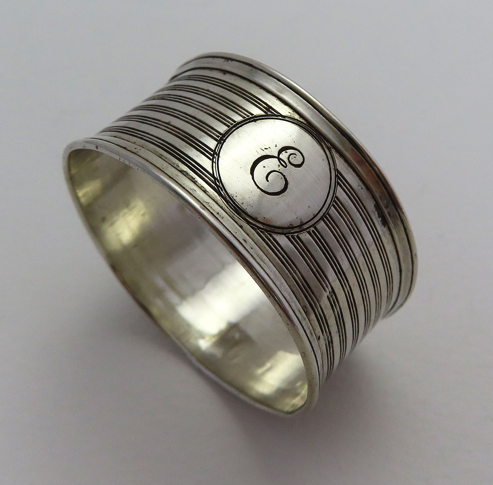1920s Monogram 'E' Solid Sterling Silver Serviette Napkin Ring. English Birmingham Hallmarked.