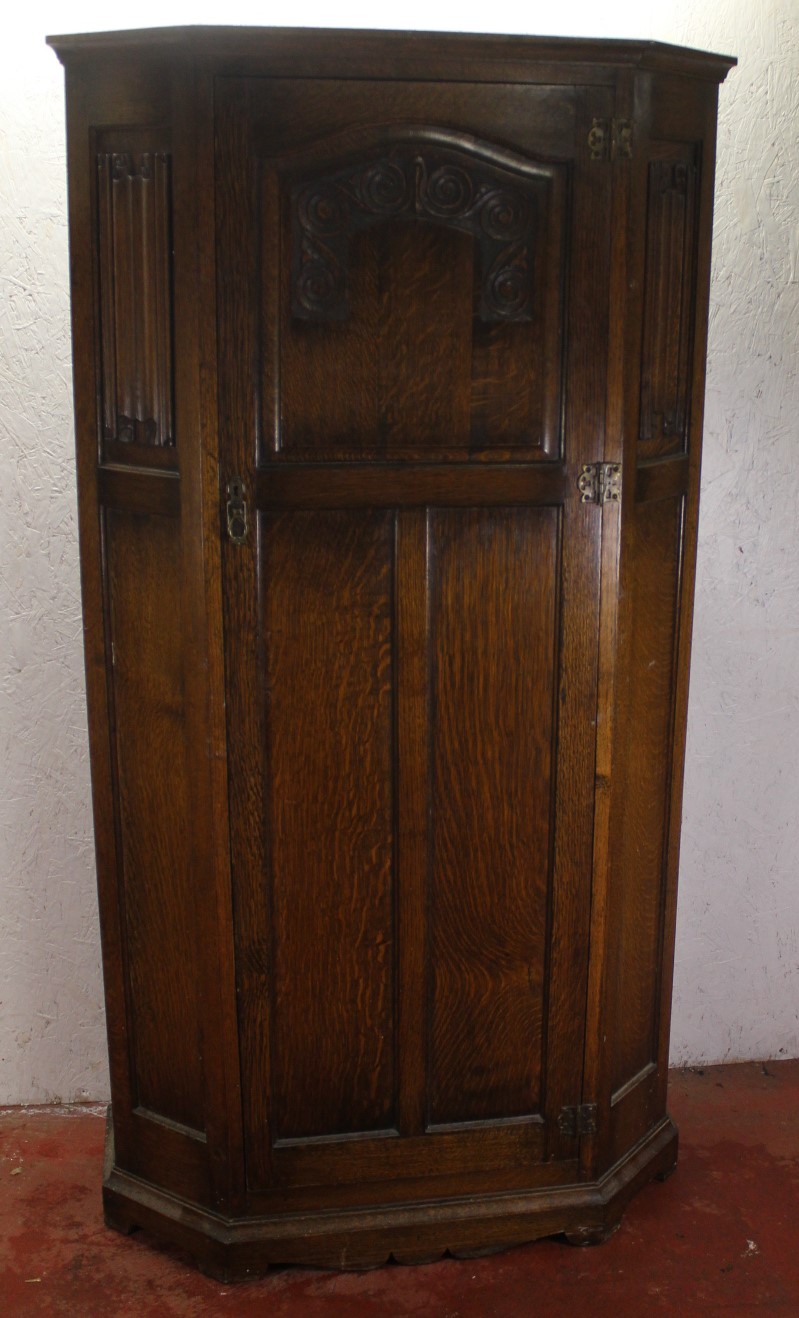 1920s Oak Hall Wardrobe with Linen Fold Panel