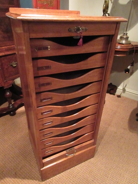 1920s Polished Oak Tambour Fronted Filing Cabinet
