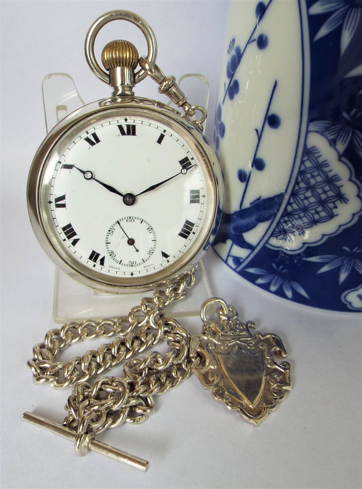 1920s Rival Silver Pocket Watch & Chain