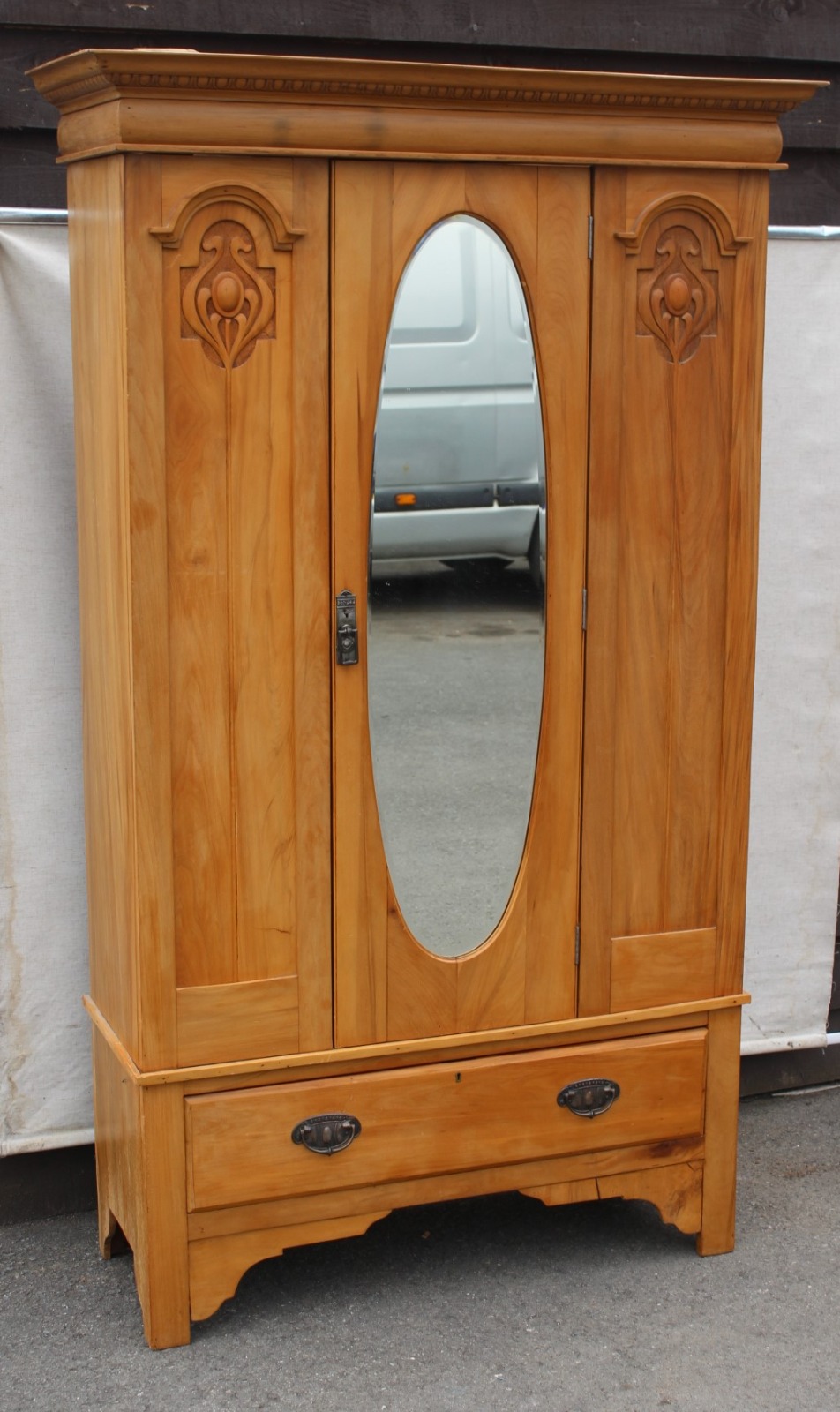 1920s Satin Walnut 1 Door Mirrored Wardrobe with Drawer