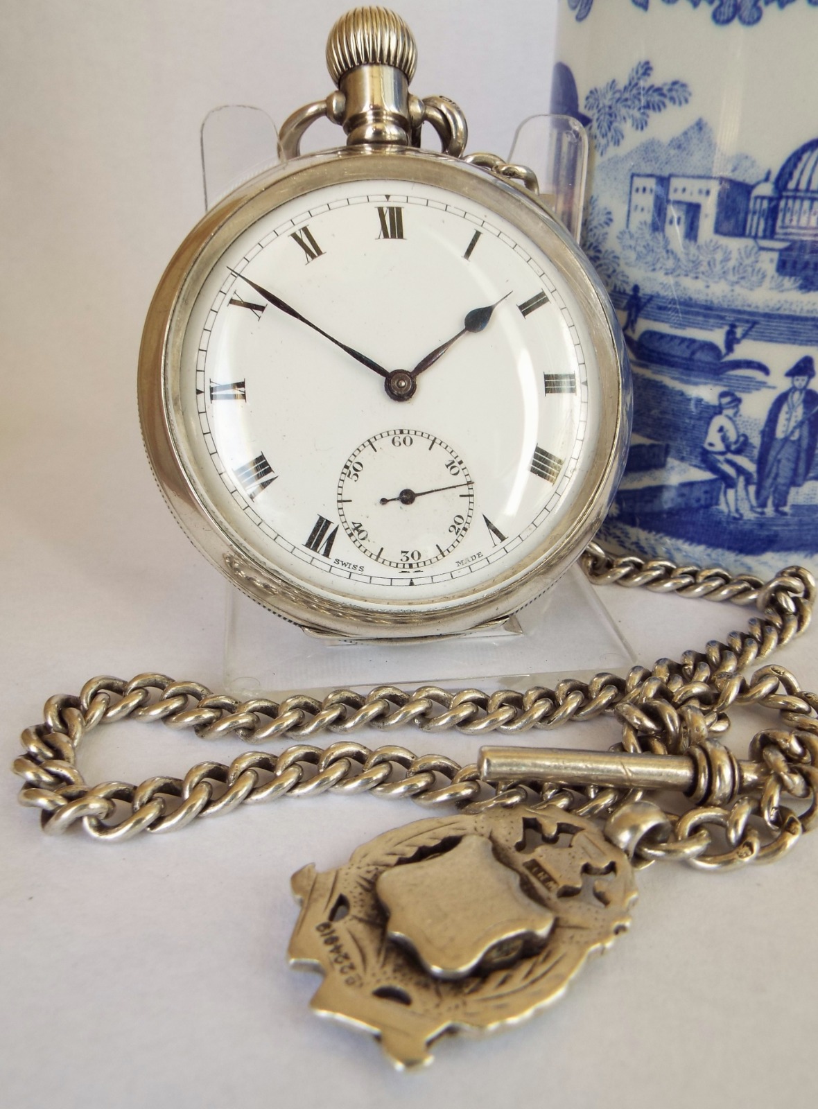 1920s Semloh Silver Pocket Watch & Chain by Cyma