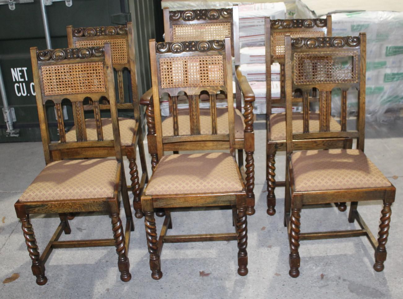 1920s Set 6 Oak Barley Twist Dining Chairs with Cane Backs