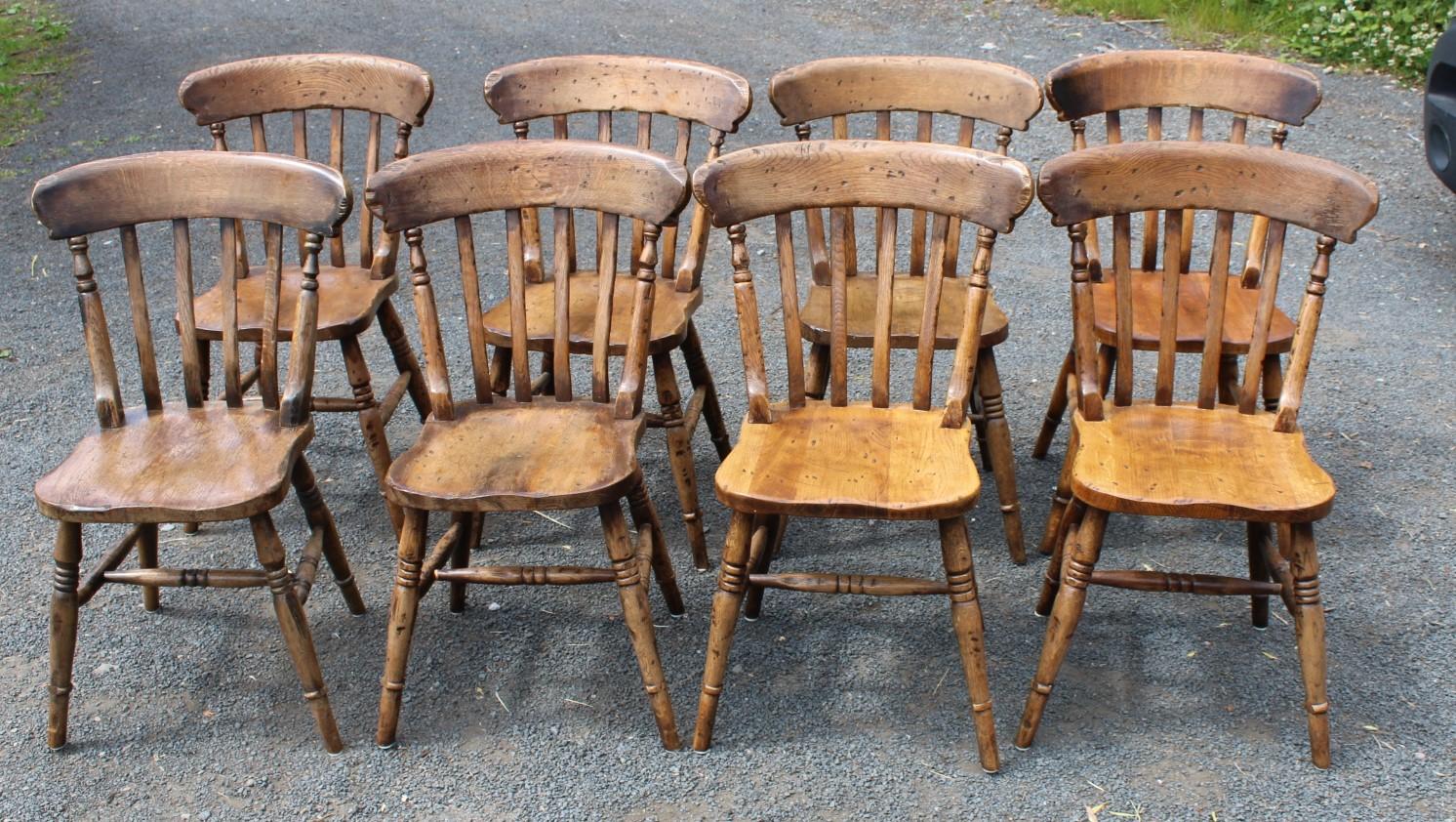 1920's Set 8 Beech Slatback Kitchen Chairs