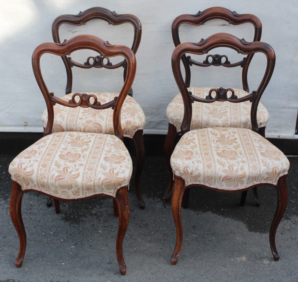 1920s Set of 4 Mahogany Balloon Back Dining Chairs Floral Upholstery