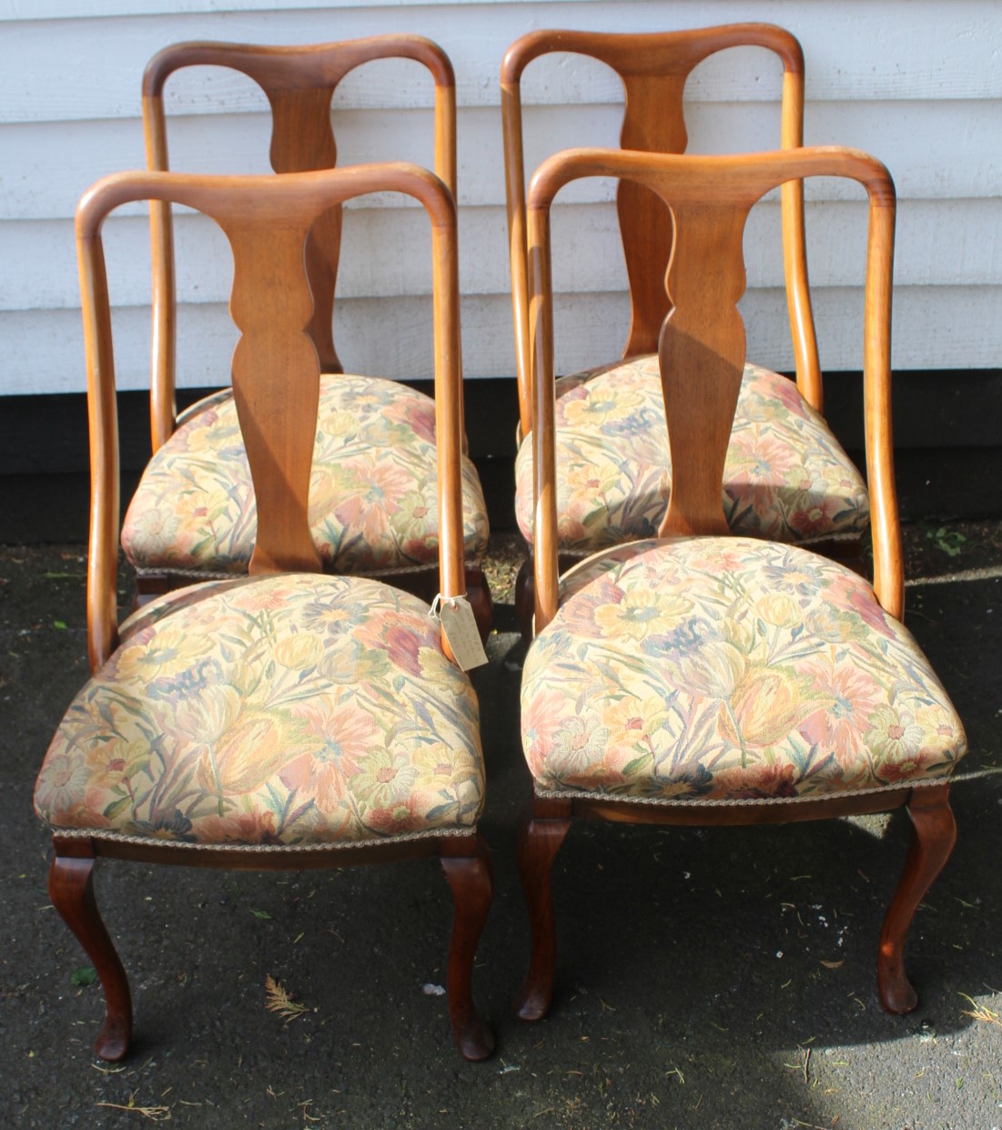 1920s Set of 4 Mahogany Cab Leg Dining Chairs Floral Upholstery