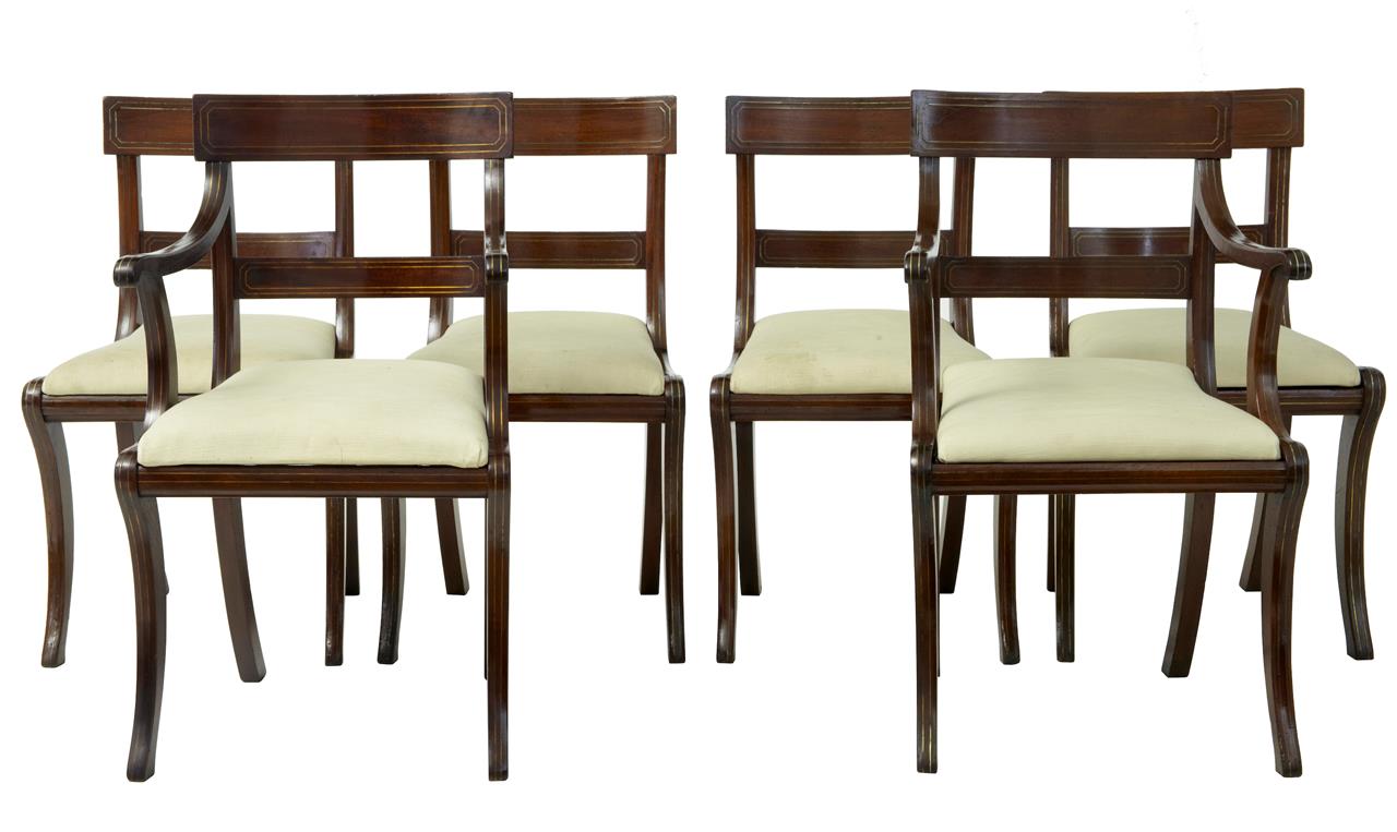 1920's Set of 6 Mahogany Brass Inlaid Dining Chairs (1 of 1)