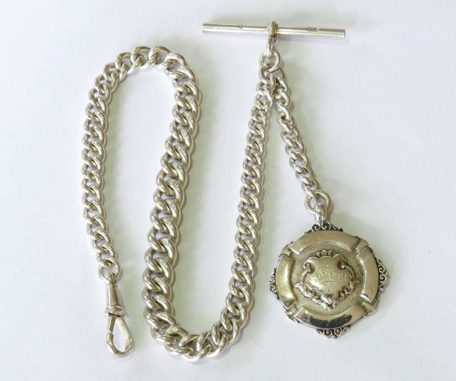 1920s Silver Pocket Watch Chain & Tennis Fob
