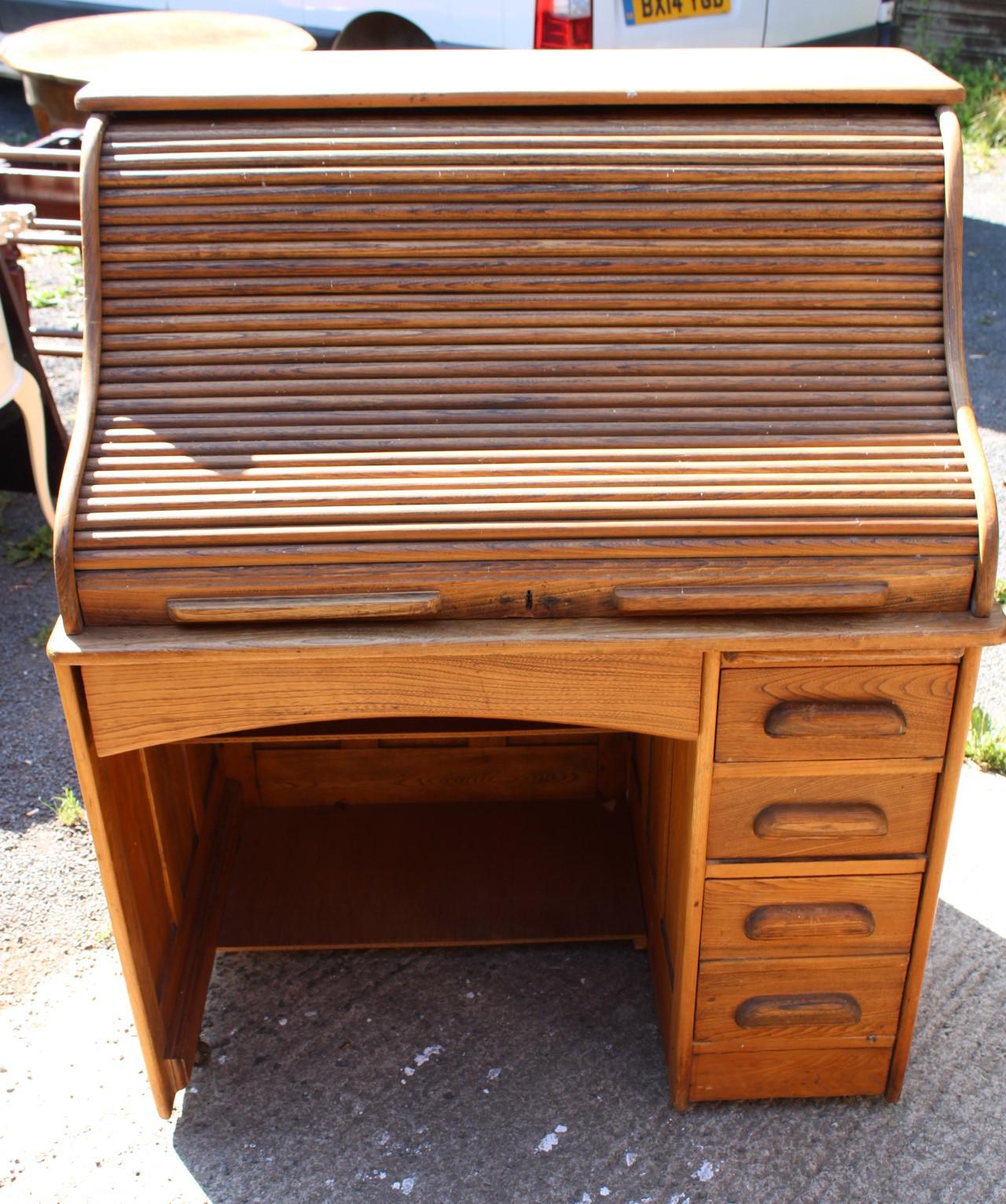 1920s Single Pedestal Oak Stype Rolltop Desk