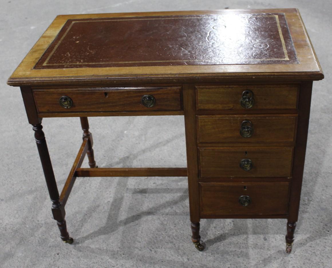 1920s Small Walnut Desk with Green Leather Inset - one piece