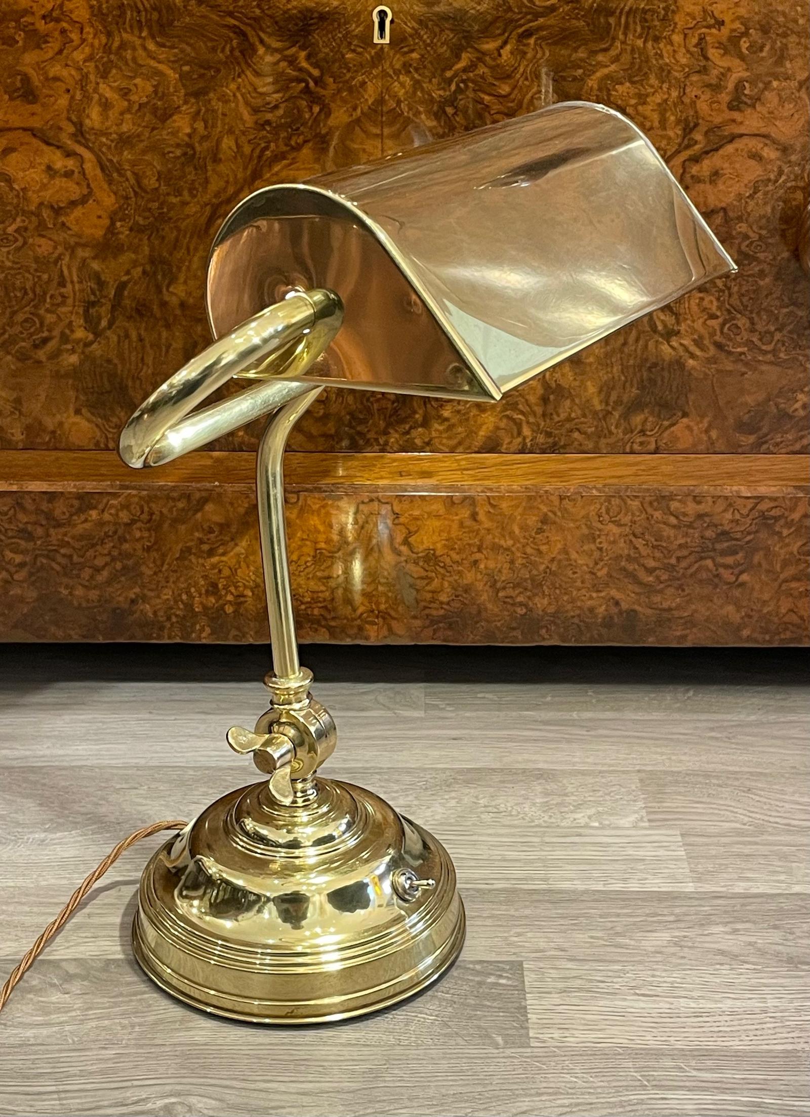 1920s Solid Brass Bankers Lamp