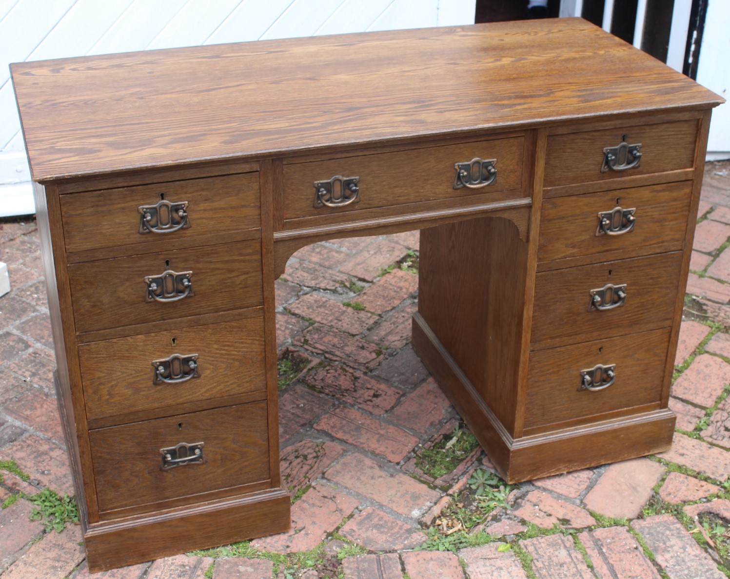 1920s Solid Oak Pedestal Style Desk. One Piece