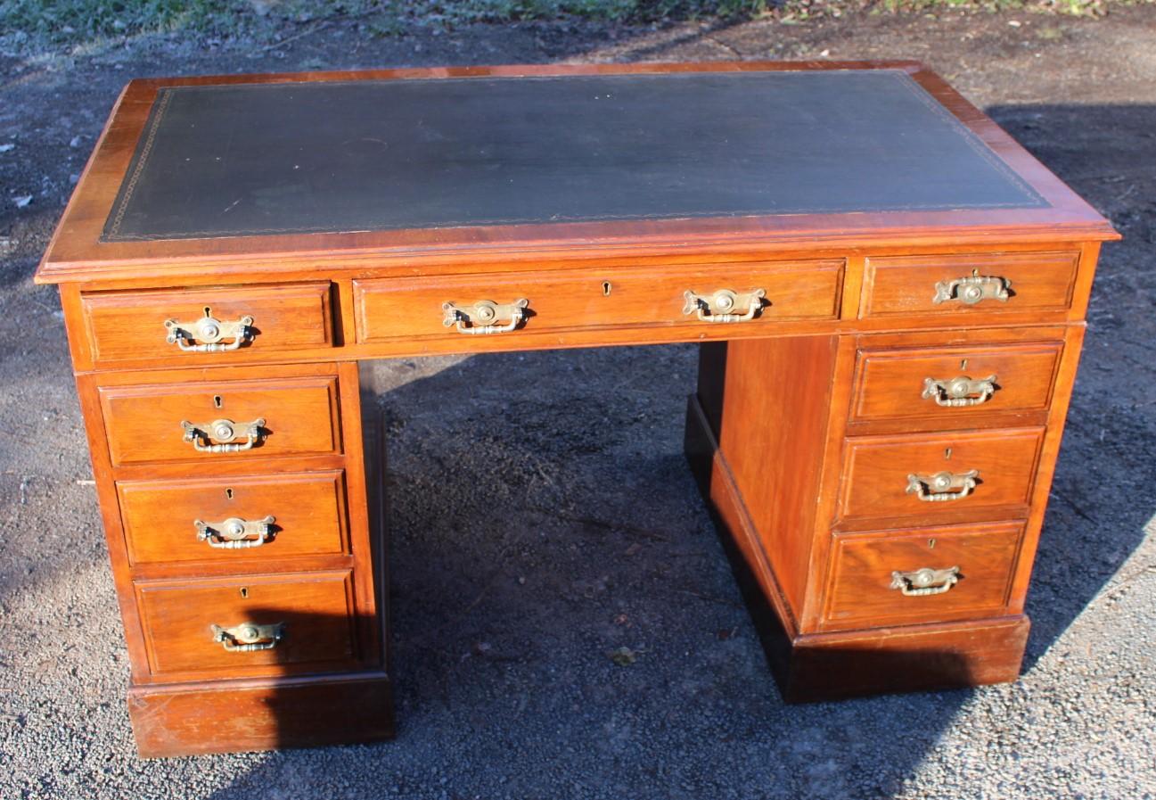 1920s Solid Walnut Pedestal Desk with Dark Green Leather