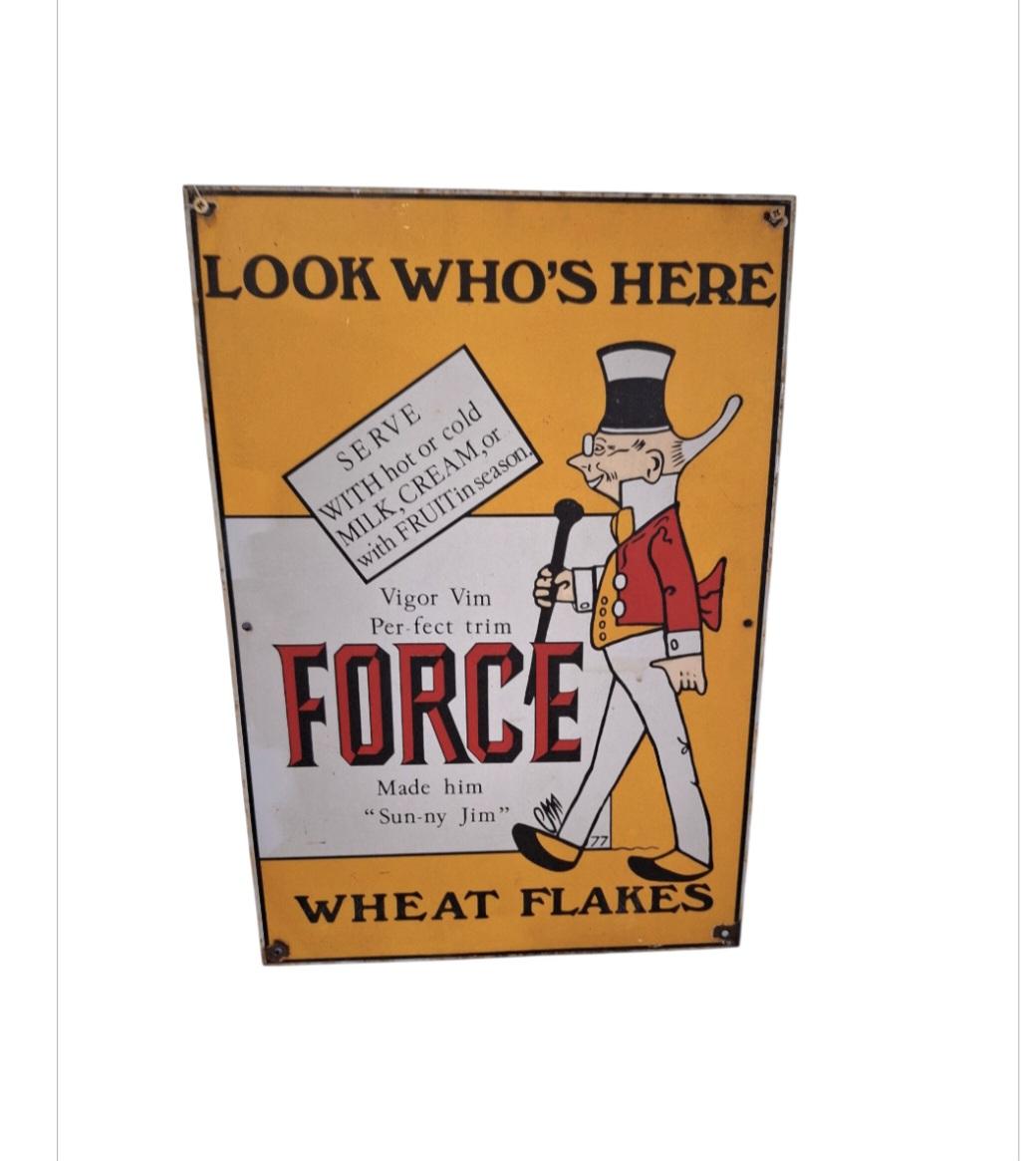 1920s "Sunny Jim" Force Wheat Flakes Advertising Sign (1 of 1)