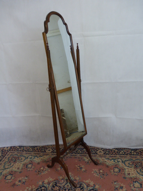 1920's Walnut Cheval Mirror