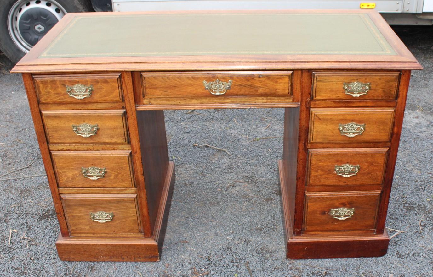 1920s Walnut Pedestal Desk with Green Leather Top. 1 Piece