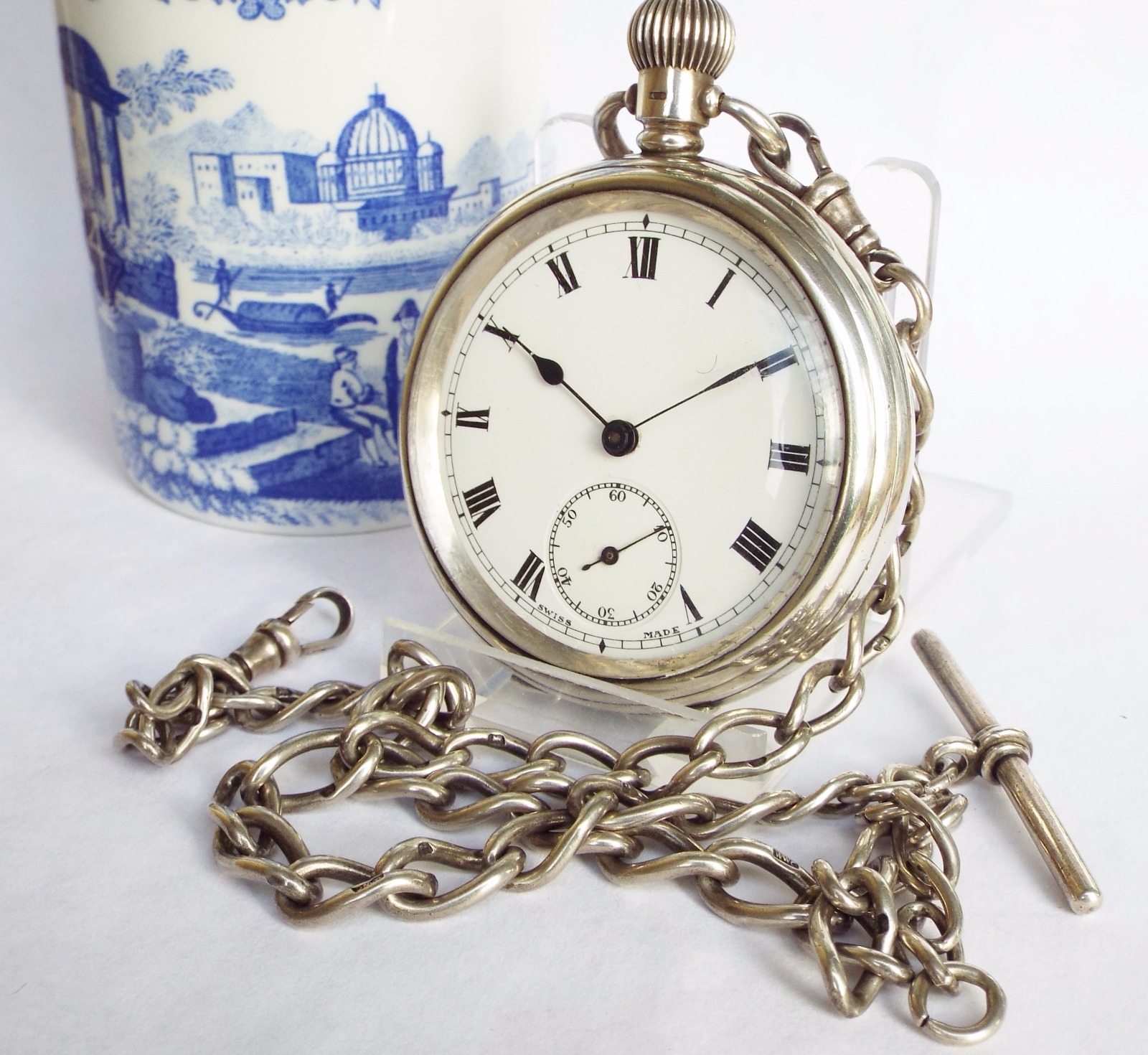 1921 Silver Open Faced Pocket Watch & Chain