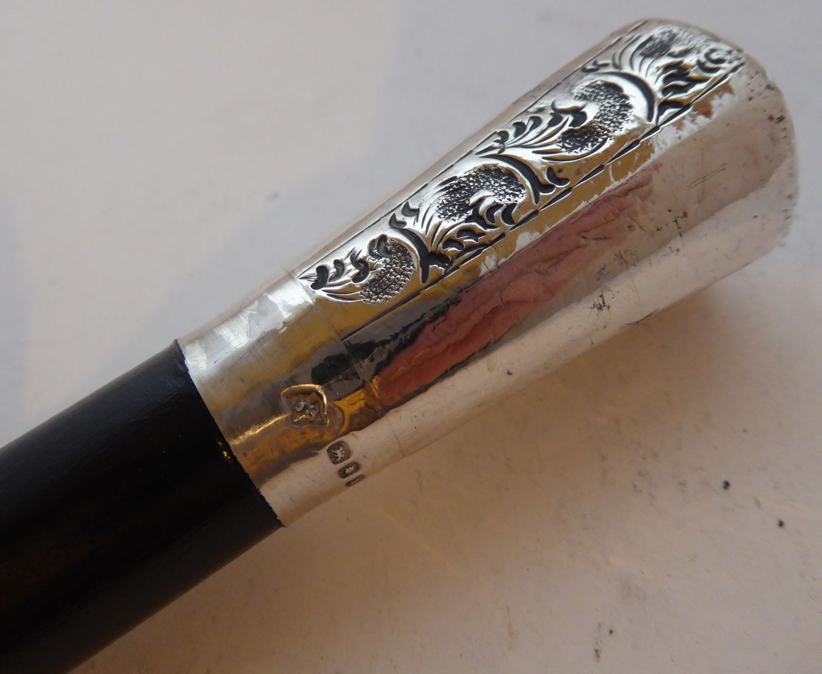 1921 Walking Stick Cane Hallmarked Solid Silver Pommel Ebonised Wood Shaft