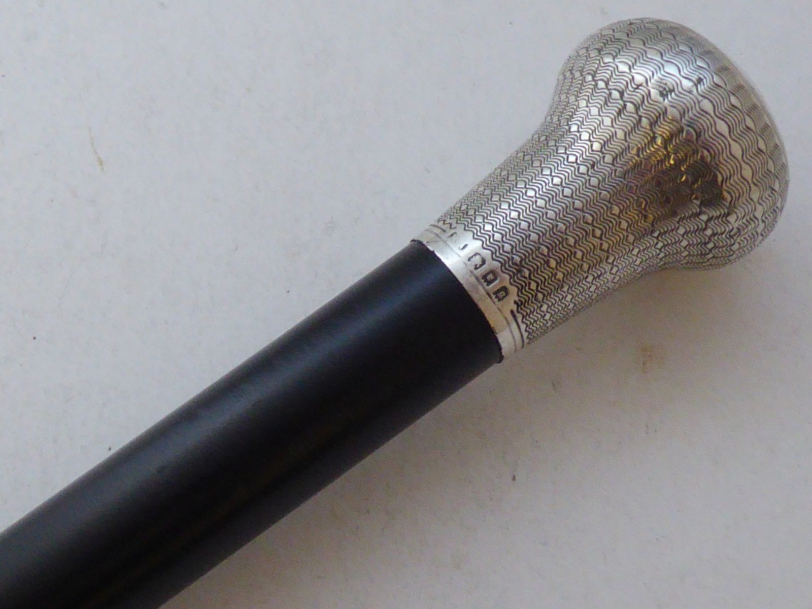 1922 London Walking Stick Cane Hallmarked Solid Silver Pommel Ebony Wood Shaft