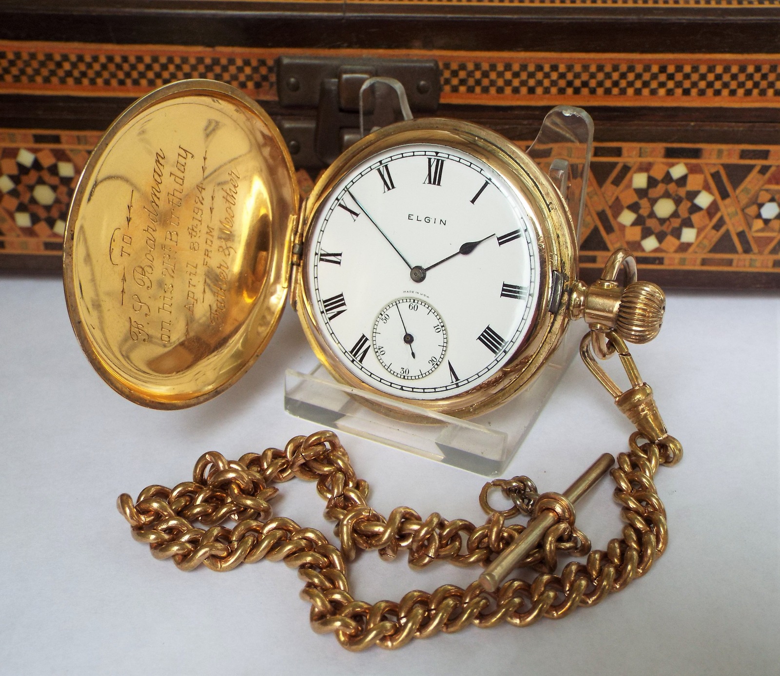 1923 Elgin Full Hunter Pocket Watch & Chain