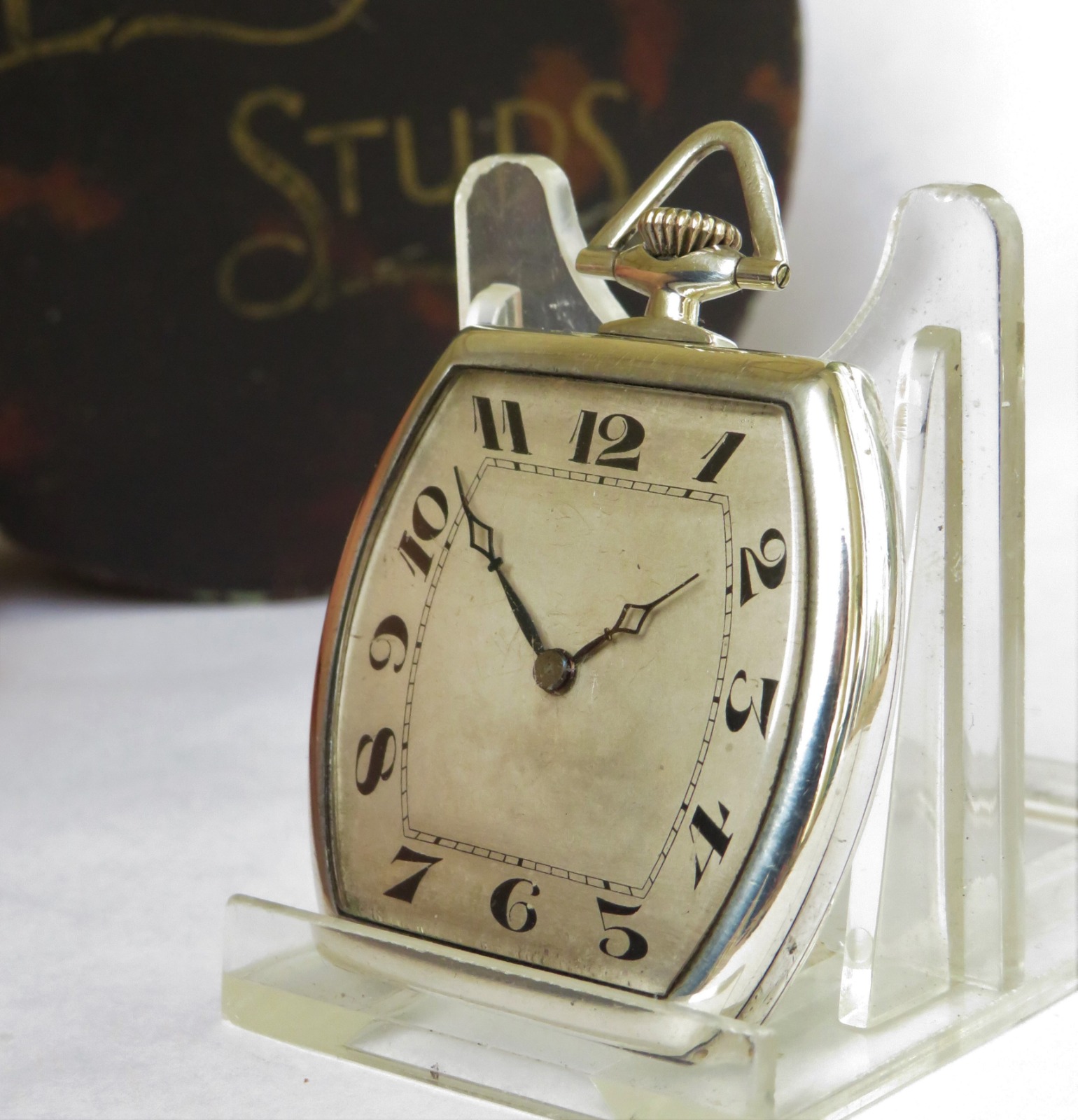 1923 Silver Tonneau Shaped Art Deco Pocket Watch